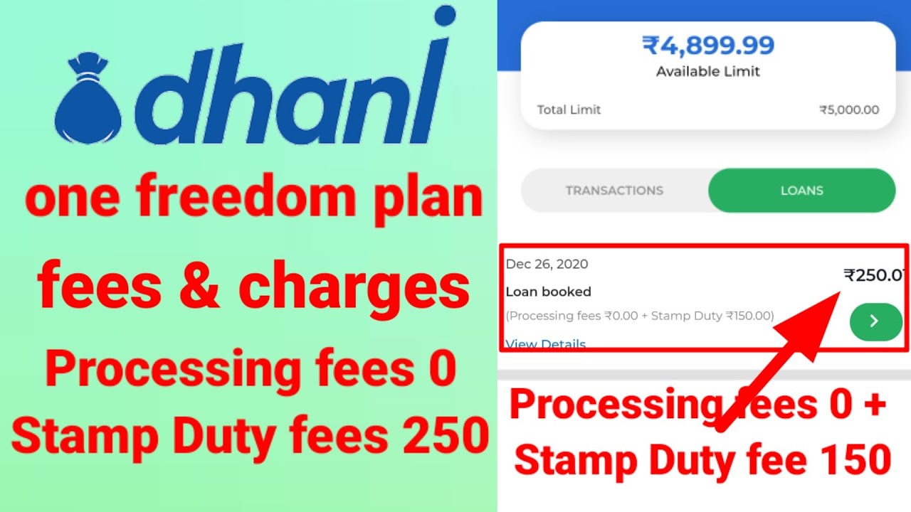 Dhani One Freedom Plan Fees Charges Processing Fees 0 Stamp Duty Fees 150 Youtube