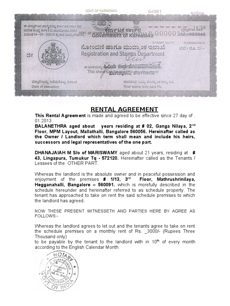 Rental Agreement Format Agreement Affidavit Rental Agreement Bangalore Karnataka