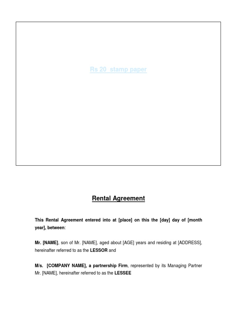 Rent Agreement Stamp Paper Format In English