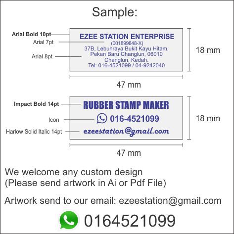 Rubber Stamp 41mm x 70mm Custom made. With just the company name reg. RM3300 RM2600 Select options.